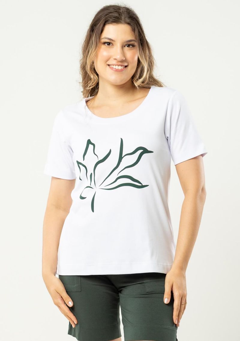 Blusa Manga Curta Pau a Pique Branca Estampada.