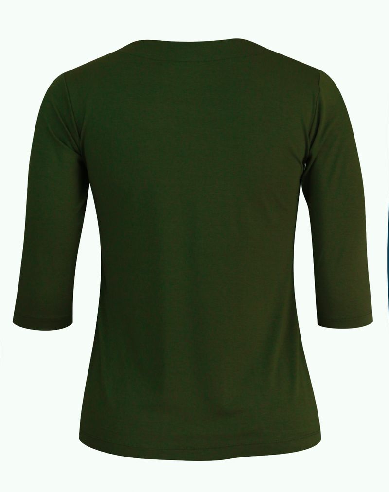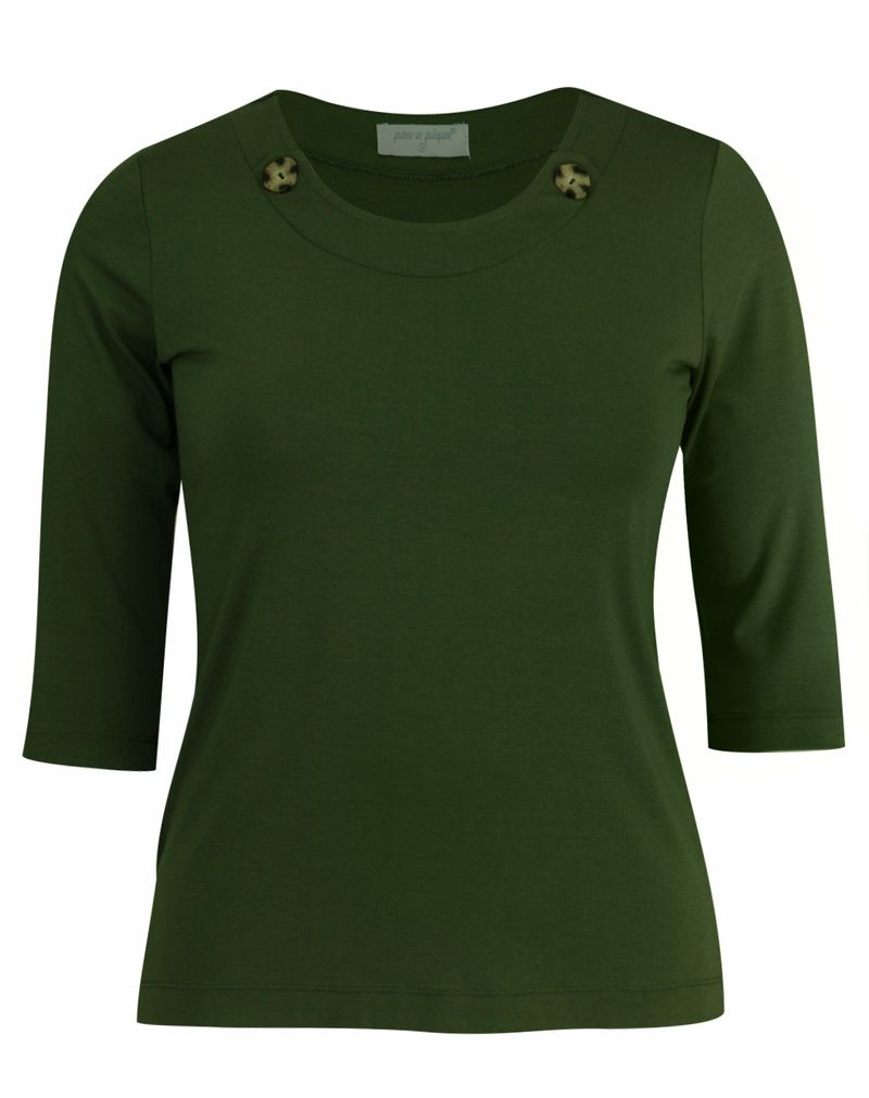 Blusa com decote redondo de malha básica, detalhe com Botão no decote.