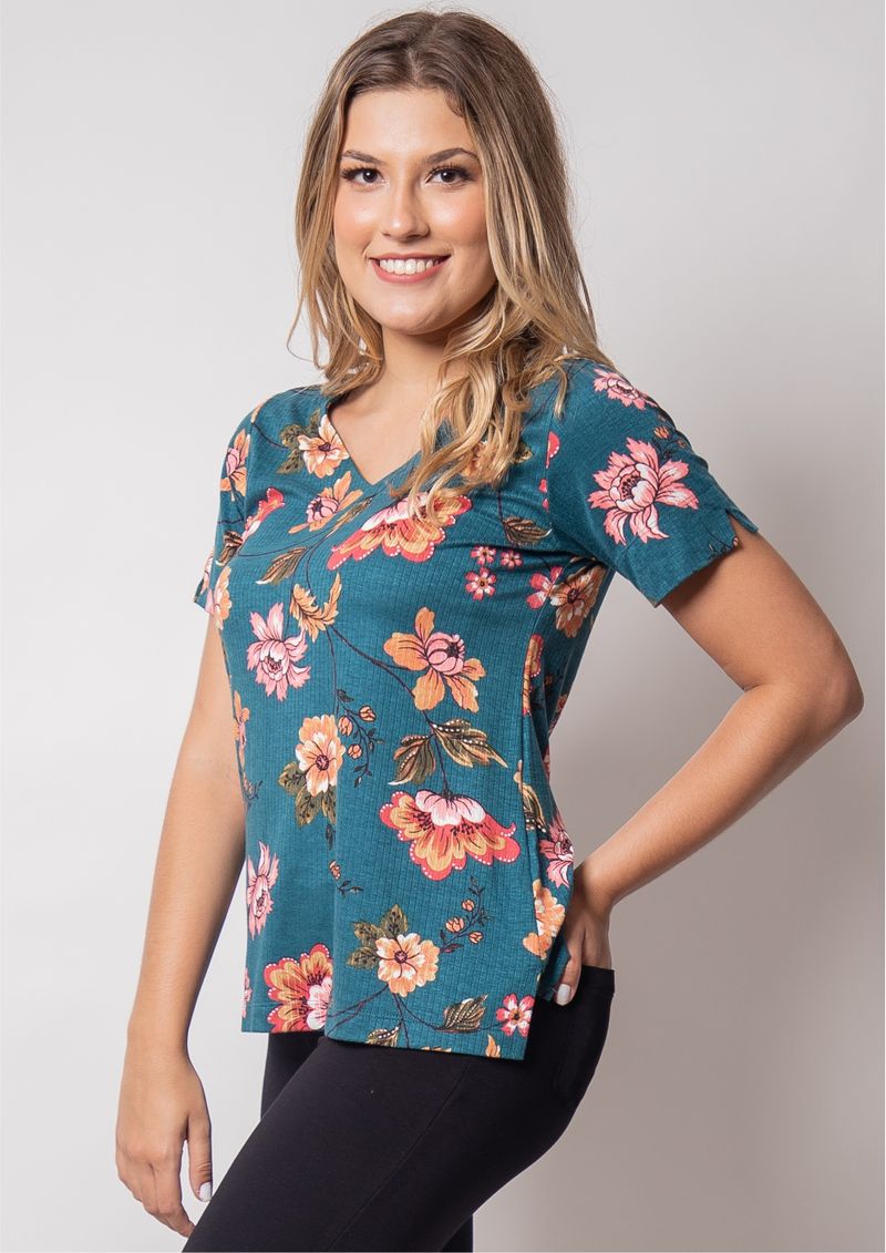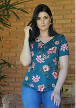 Blusa estampada com fundo Azul Petróleo .