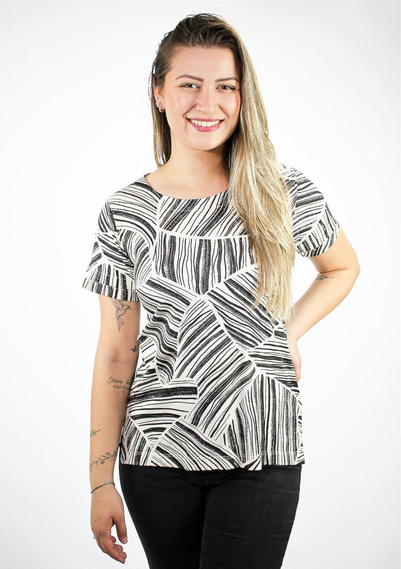 Blusa Estampada em Preto e Off White – Conforto e Estilo para o Seu Guarda-Roupa.