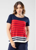 Blusa Listrada Azul Marinho, Vermelho e Off White: Estilo e Conforto para o Dia a Dia!
