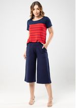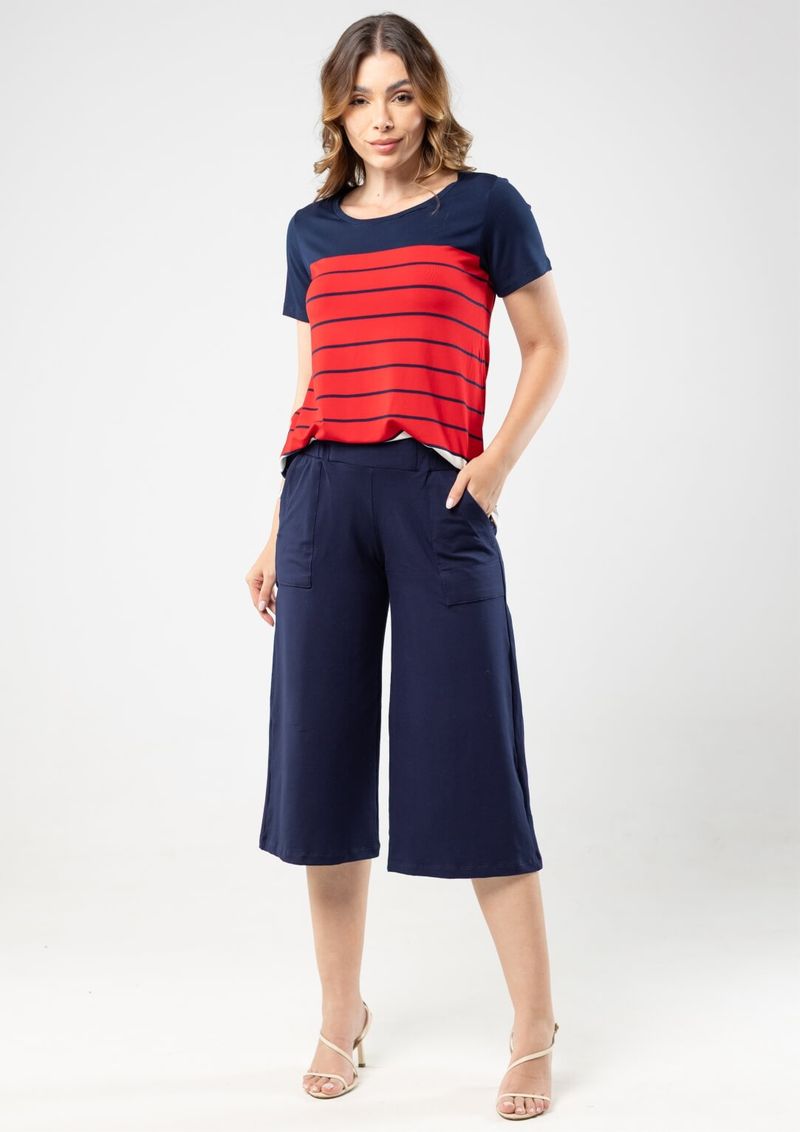 Atualize seu guarda-roupa com a blusa listrada nas sofisticadas combinações de Azul marinho, Vermelho e Off White.