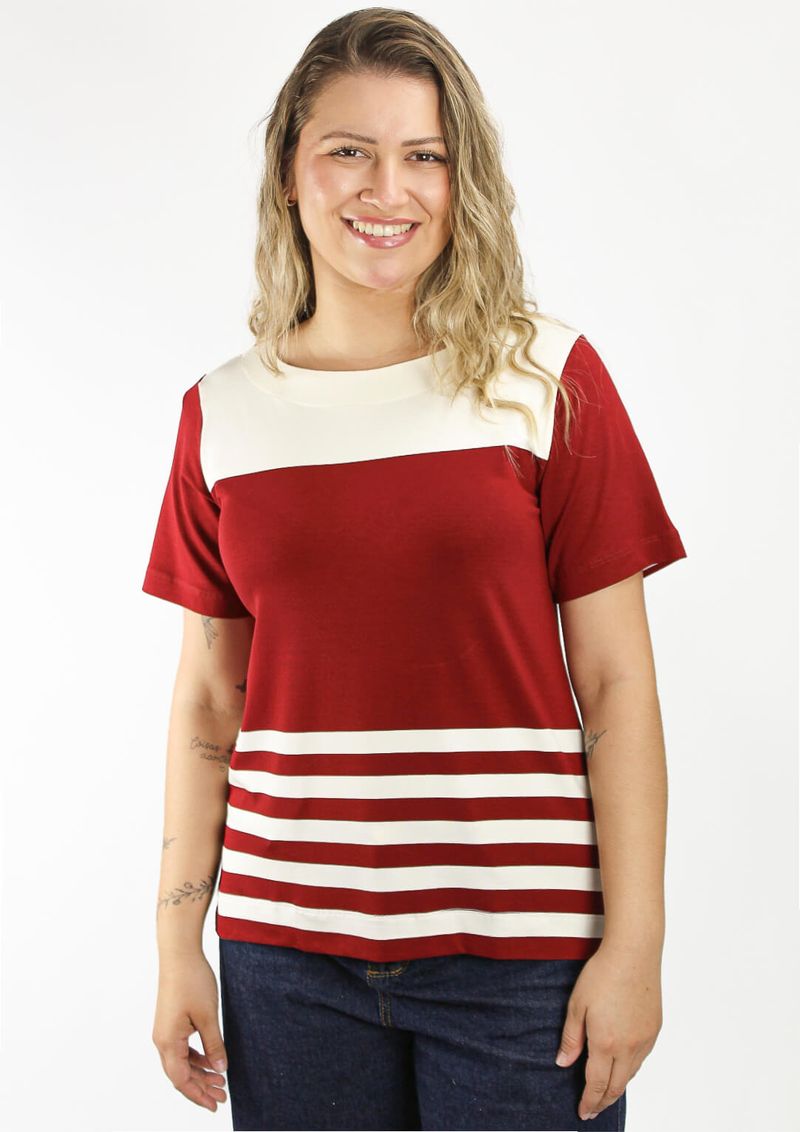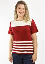Blusa Listrada em Vinho e Off White – Conforto e Estilo para o Seu Guarda-Roupa.