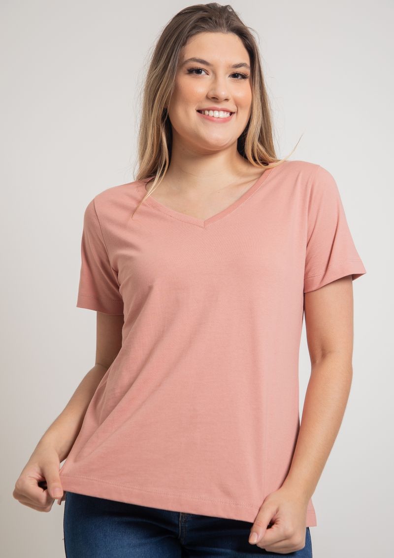 Blusa com decote em "V" e estampa lisa. Rosê.
