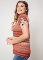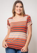 Blusa em malha listrada em tons de Laranja e Cinza.