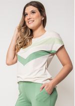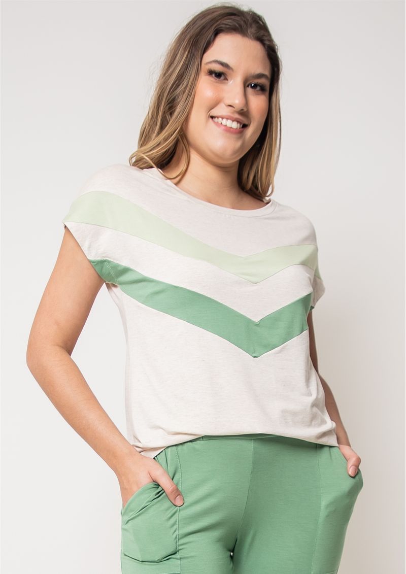 Blusa na cor Cru, com recortes em tons de Verdes.
