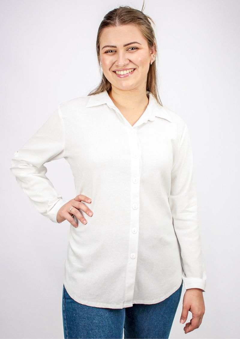 Camisa feminina de linho Branco.