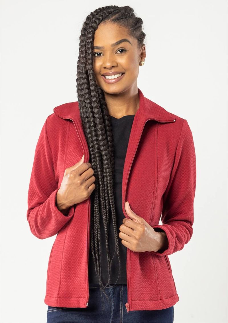 Casaco feminino matelassê na cor Vermelho.
