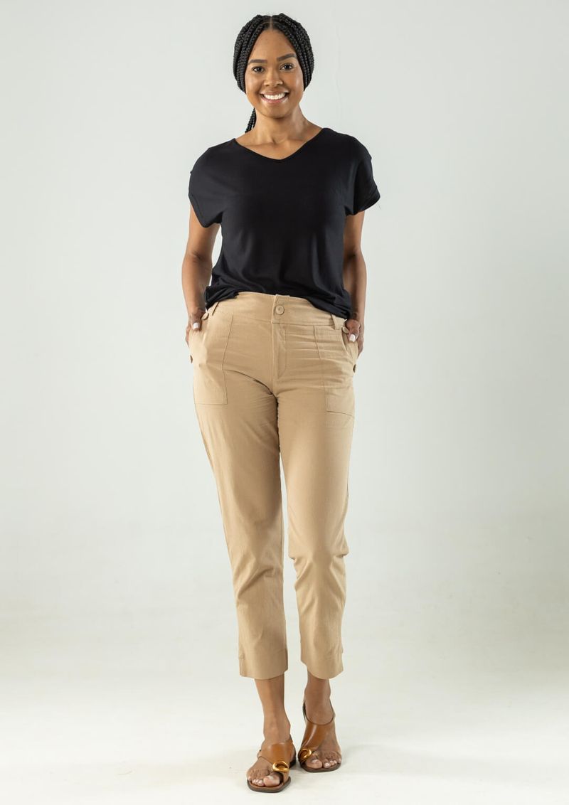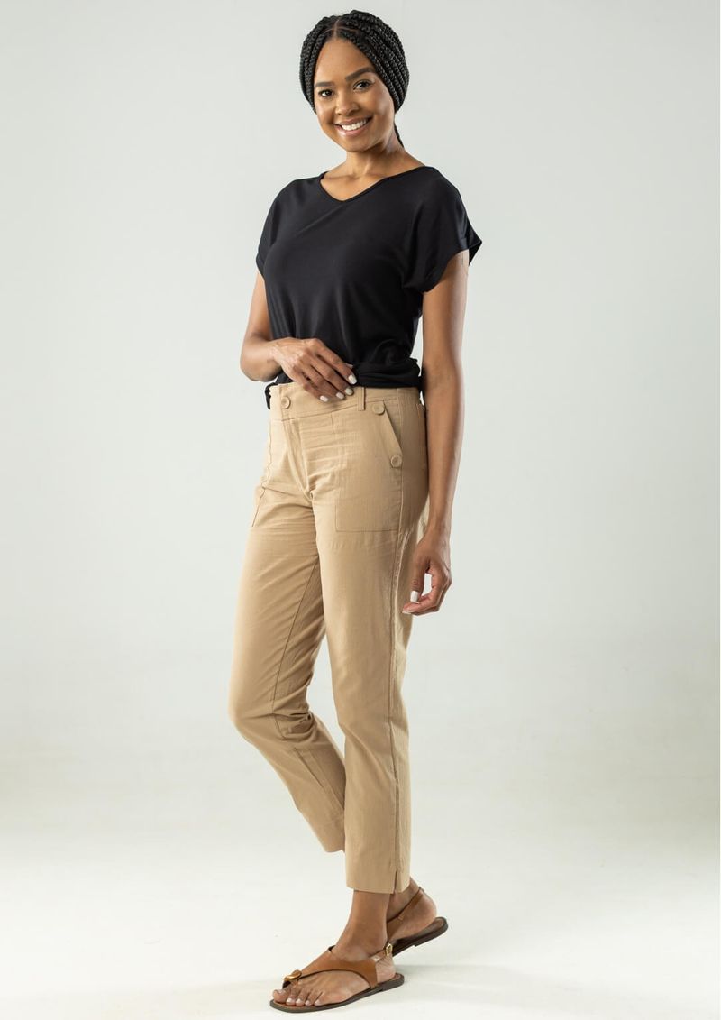 Calça Cigarrete Sarja Adamascada – Bege.