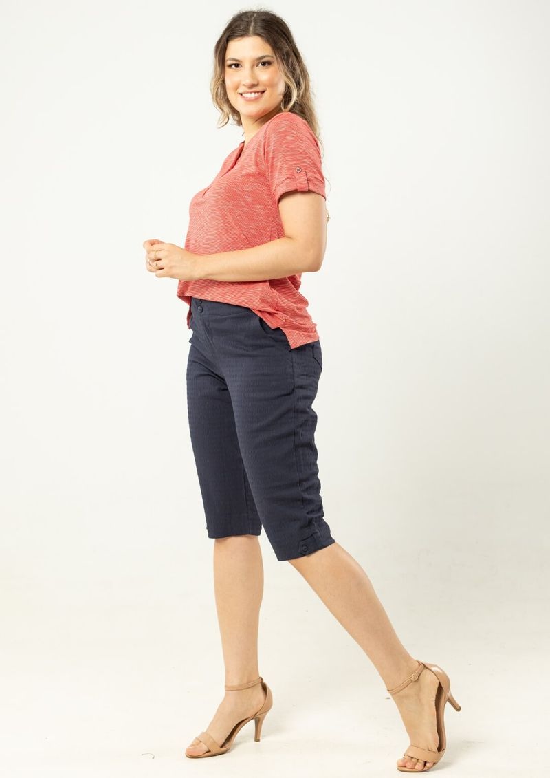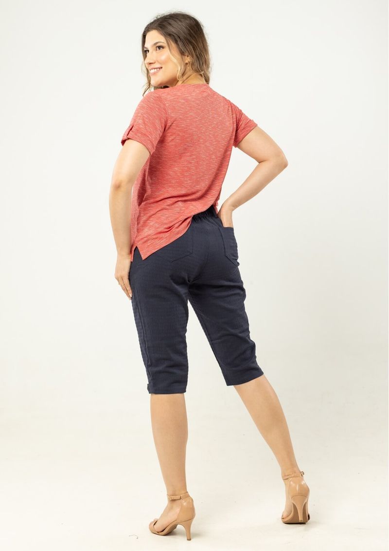 Calça Corsário Feminina de Sarja Anarruga Azul-Marinho.