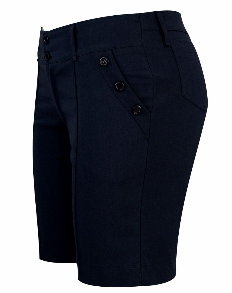 Shorts de cós e fechamento através de 2 botões, com pequeno elástico nas costas.