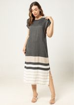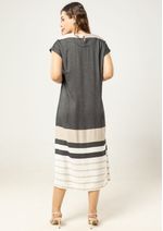 Seu design listrado, com cores sóbrias e modernas, valoriza a silhueta e traz um toque de sofisticação casual ao visual.