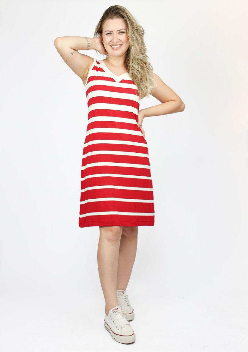 Vestido Regata Listrado Vermelho e Off White - Conforto e estilo para todas as ocasiões.