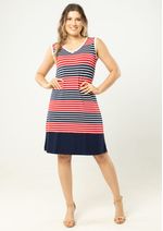 Vestido Pau a Pique Regata Listrado Vermelho e Off White.