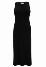 Vestido em malha lisa - preto, longo, com bolsos laterais.
