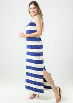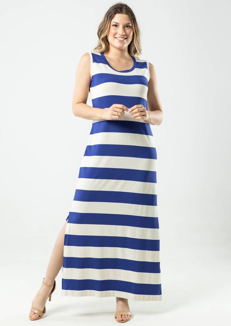 Combinando elegância e leveza, o Vestido Longo Listrado em