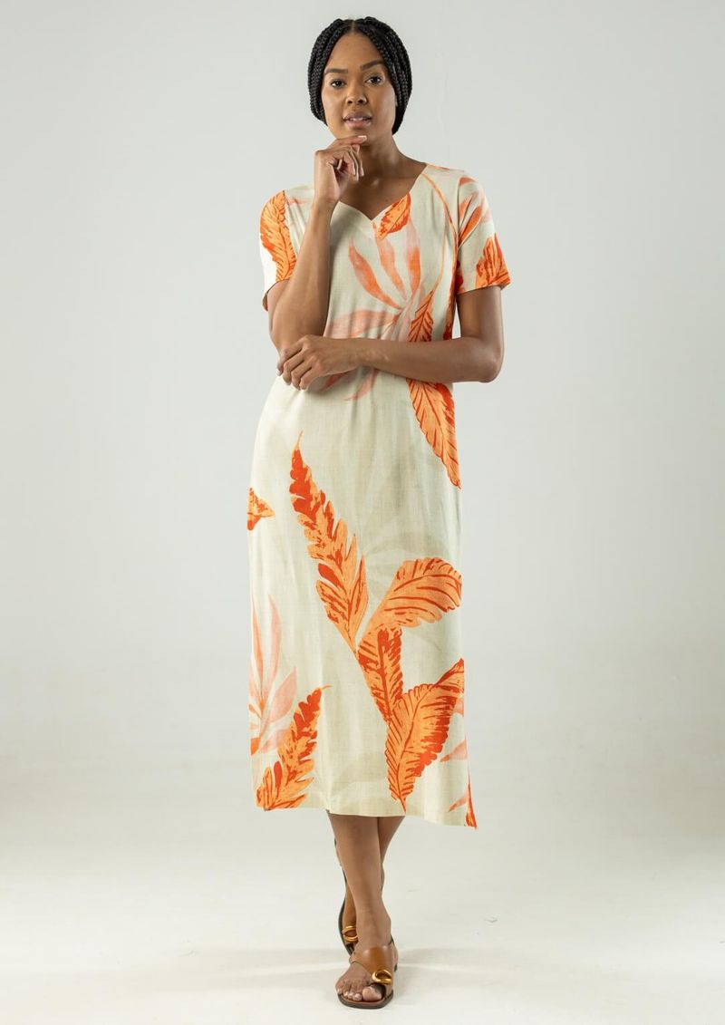 O Vestido Midi Estampado é confeccionado em viscolycra, tecido macio e confortável, perfeito para os dias quentes.