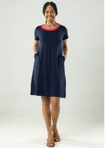 Vestido Curto com Bolsos – Elegância e Conforto em Azul Marinho.