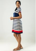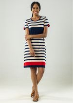 FemininoLançamentosVestidosVestidosVestido Pau a Pique Listrado Azul Marinho
