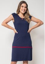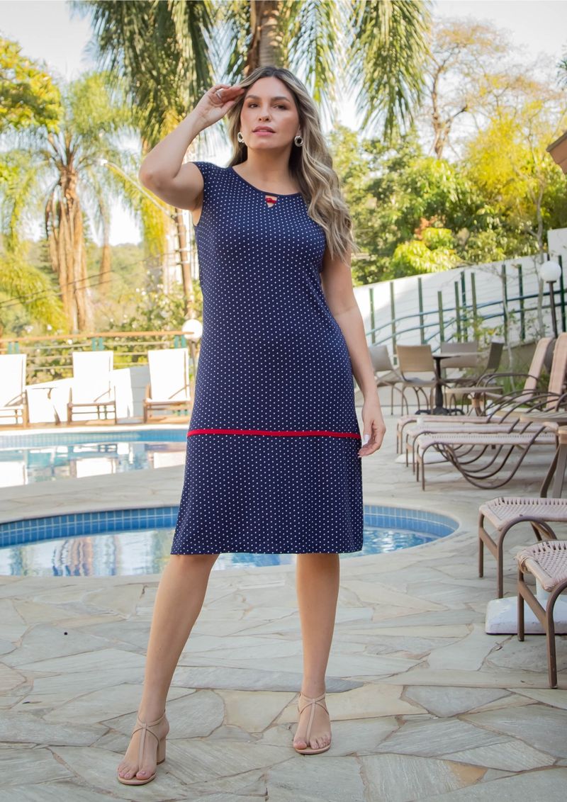 Vestido curto em malha de poá sobre o fundo Azul Marinho.