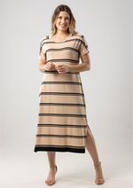 Vestido Midi Listrado – Manga Japonesa em Viscolycra.