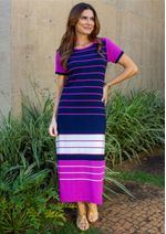 Modelo listrado em Fúcsia, Azul Marinho e Off White é a combinação perfeita que se adapta a diferentes estilos.