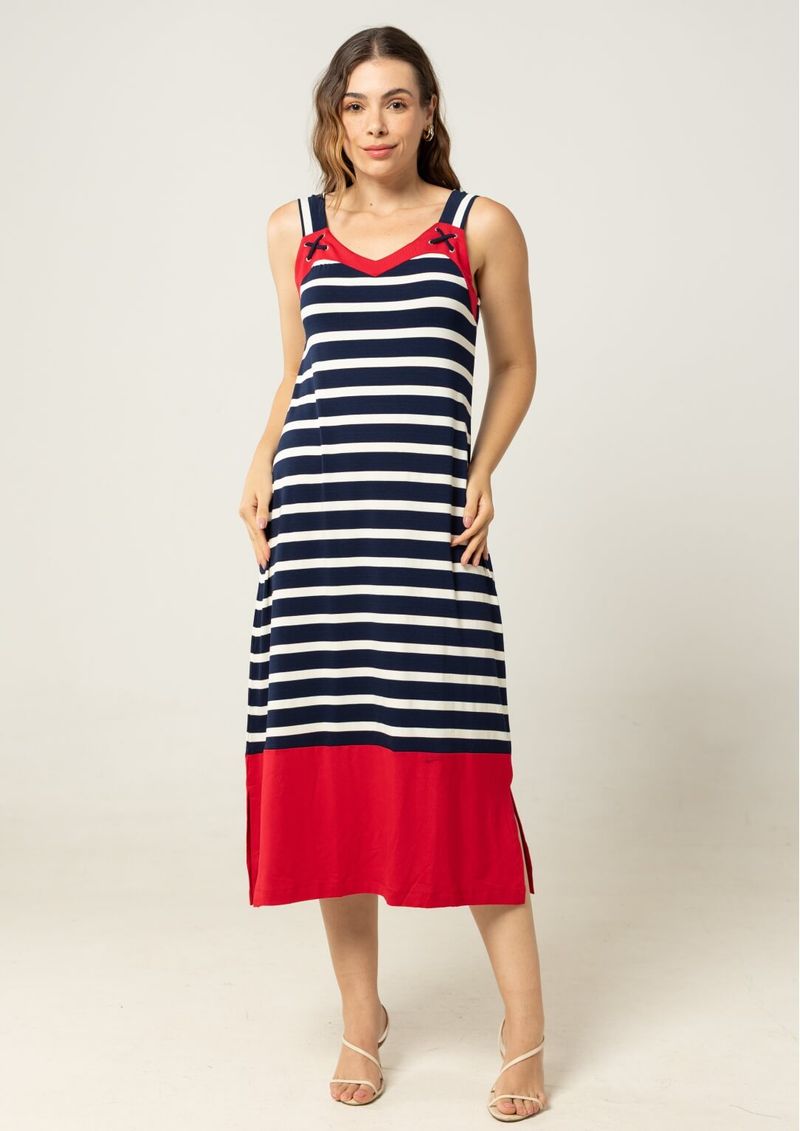 Com design moderno e atemporal, este vestido midi listrado é a escolha ideal para quem busca versatilidade.