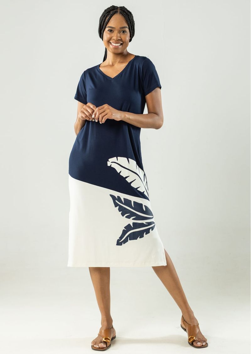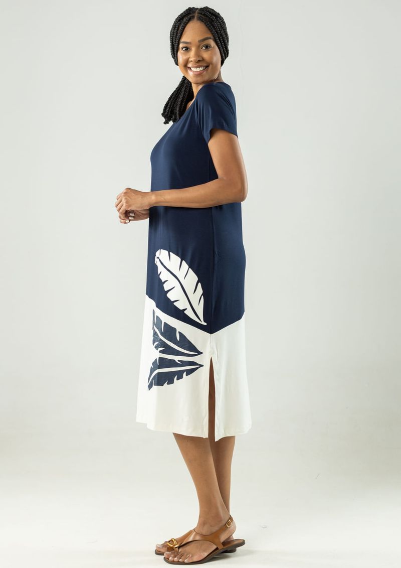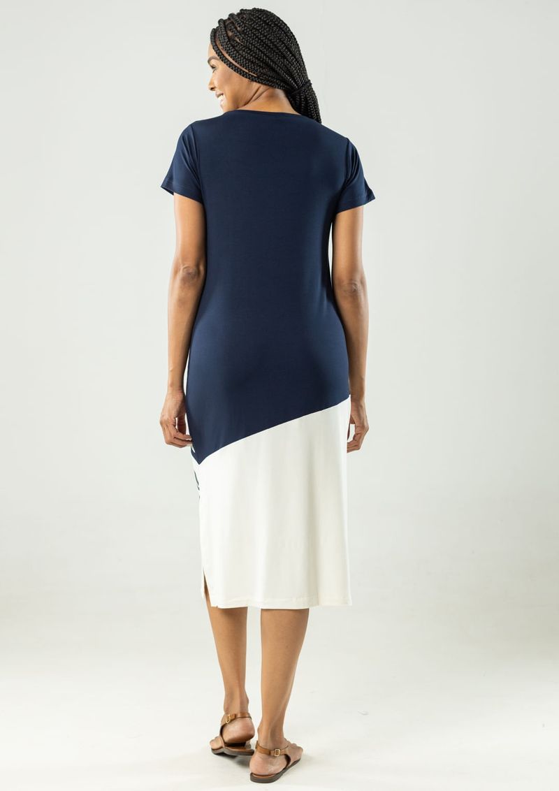 Vestido Azul Marinho básico com recorte diagonal em Off White