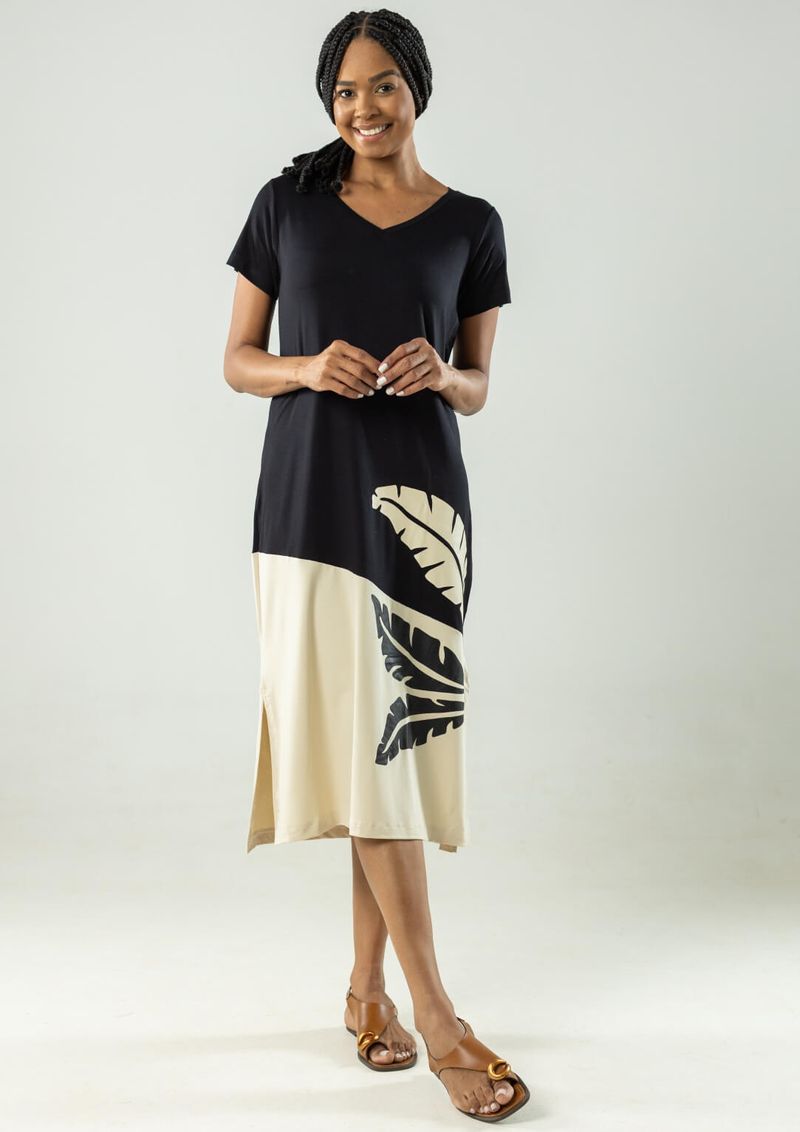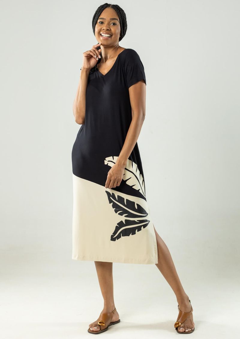 A viscose mantém o vestido fresco e confortável,