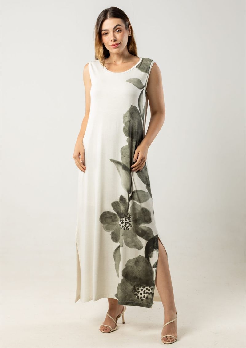 Decote redondo, fendas laterais e estampa delicada tornando essa peça ideal para qualquer ocasião.