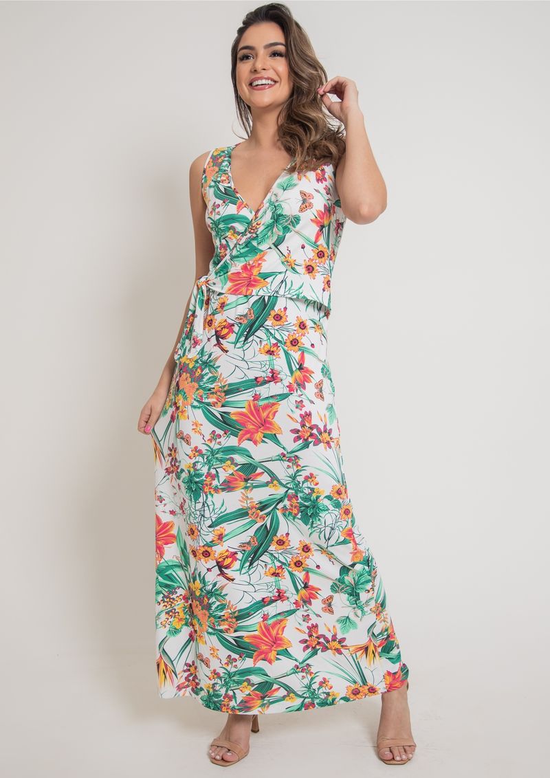 Malha do vestido com estampas em Verde, sobre o fundo Off White.