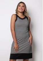 Modelo regata de alças largas com recortes lisos no decote, cavas e barra.